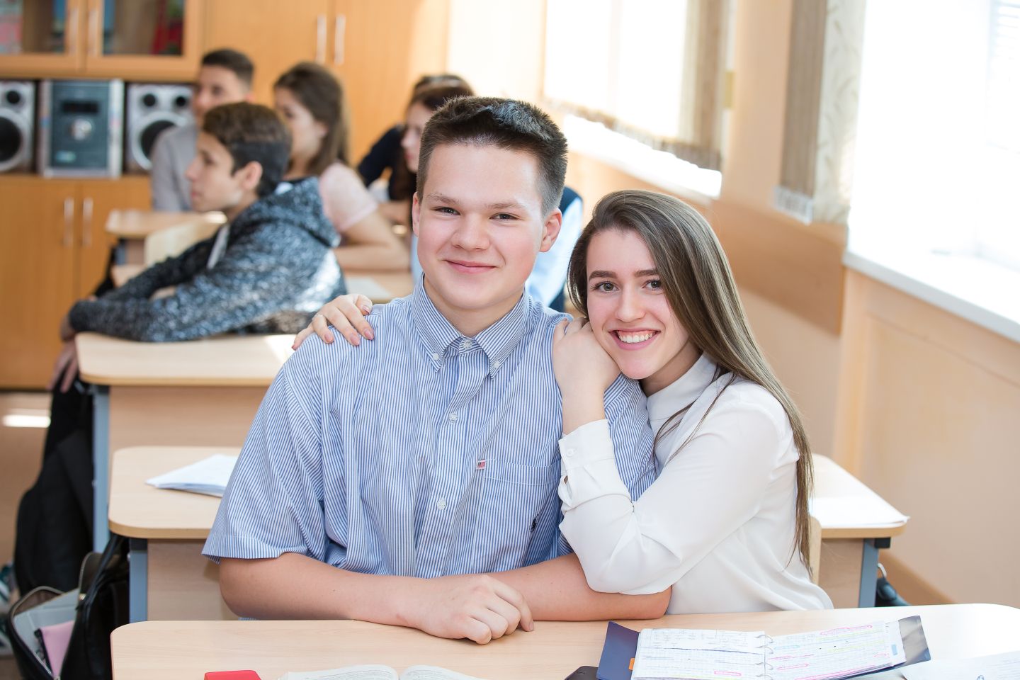Портрет на обложке. Три разворота: 1) виньетка, 2)индивидуальный разворот, 3) разворот с общим фото класса. Дизайн "Математика".
